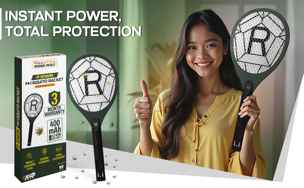Heavy duty Mosquito Bat Racket comes with a rechargeable battery of capacity 400 mAh